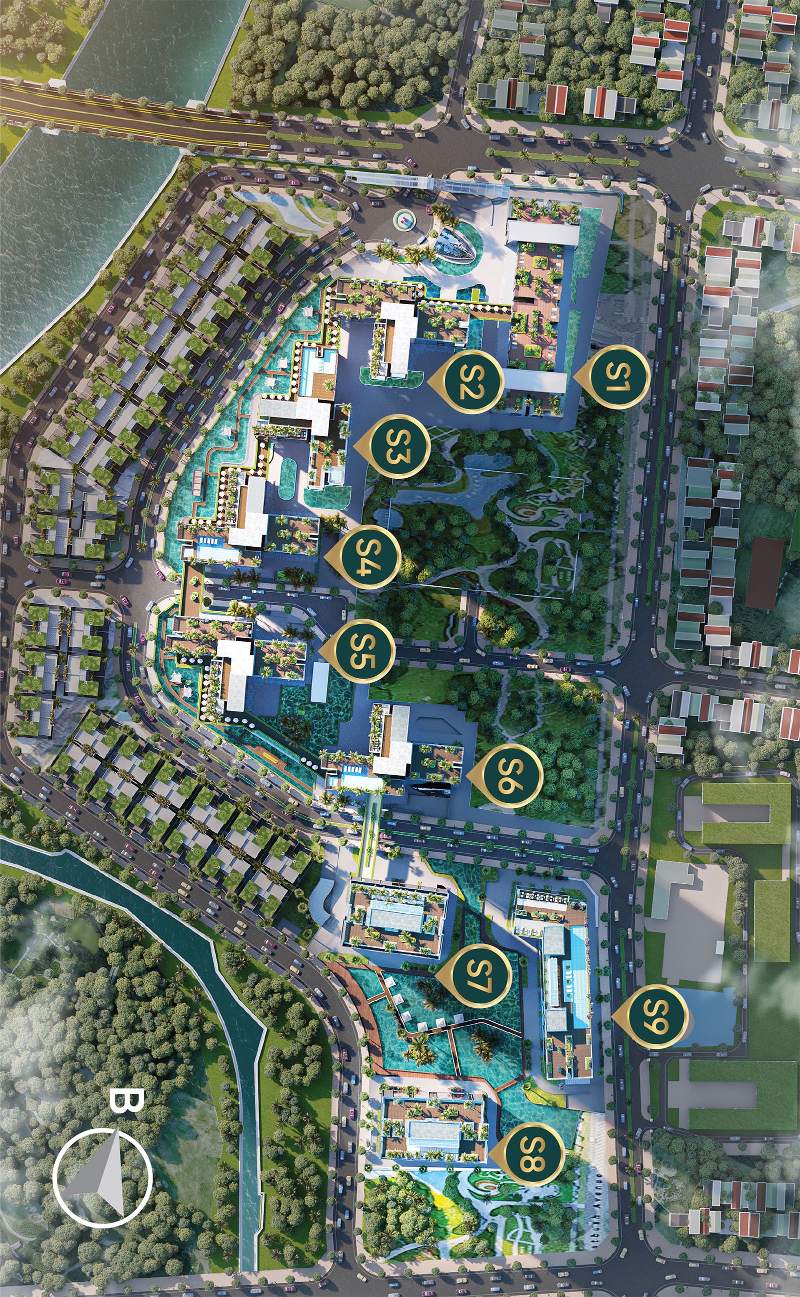 - Quy mô gồm 9 block (tòa tháp) cao từ 26–38 tầng.