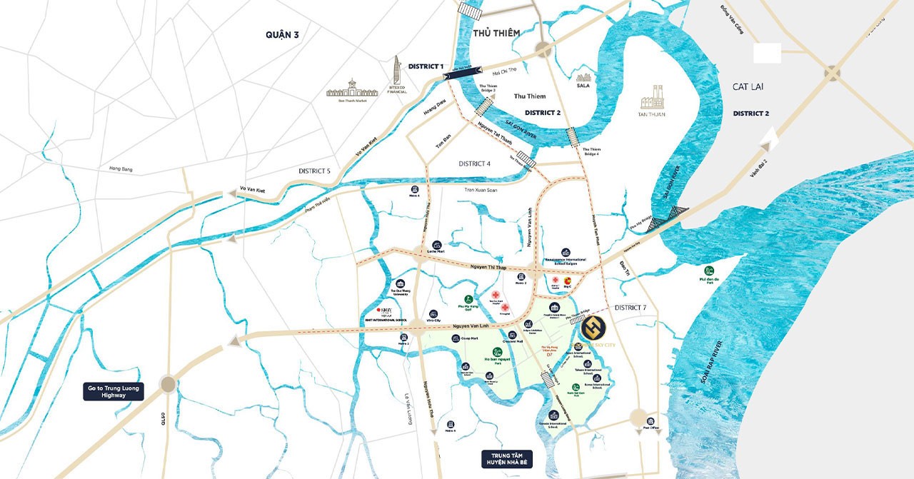 Cụ thể, dự án được đặt tại ngã tư giao nhau của đường Phú Thuận và đường Huỳnh Tấn Phát. Vị trí này cho phép dự án hưởng lợi rất nhiều từ hạ tầng giao thông hoàn thiện và tiện ích khu vực Nam Sài Gòn.